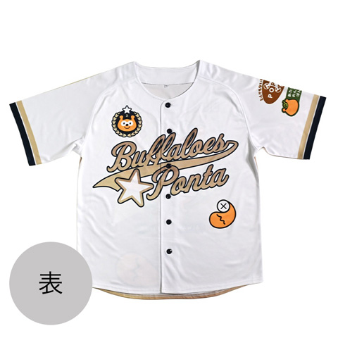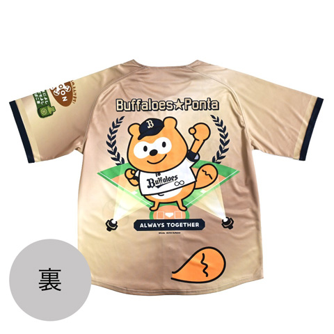 「バファローズ☆ポンタ 人間用ベースボールシャツ メモリアルゴールド」を販売します。