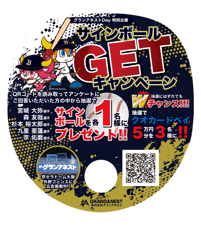 4月8日(水)の 千葉ロッテマリーンズ戦は、株式会社グランアネストがゲームスポンサーとなり「株式会社グランアネストDay」として開催いたします。