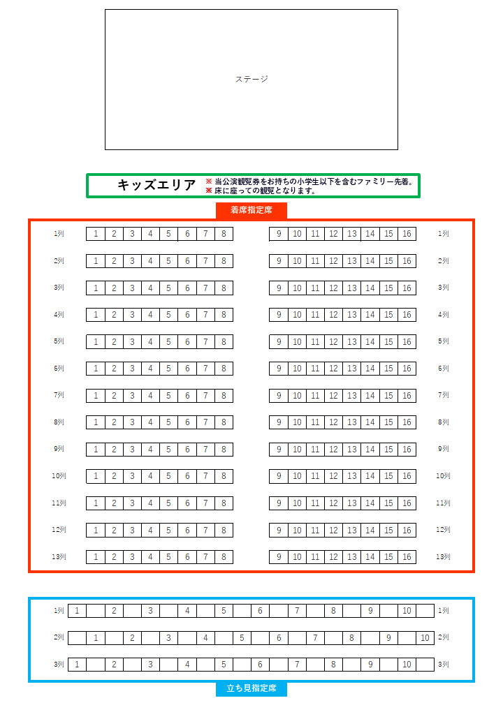 ※着席指定席は着席、立ち見指定席は立ち見となります。
