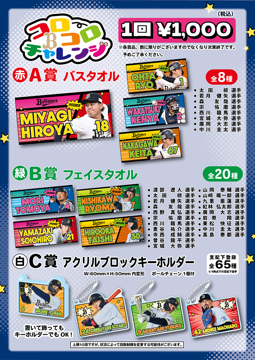 ※A賞・B賞の選手はお選びいただけますが、その選手がなくなった時点で終了となります。