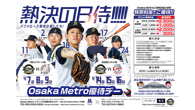 チケット4月に「Osaka Metro優待デー」開催! NEW! -