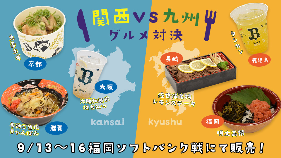 「関西vs九州 グルメ対決」9/13~16福岡ソフトバンク戦にて販売!
