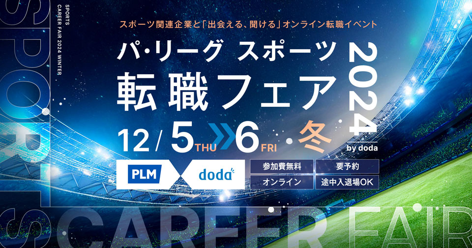 「パ・リーグ スポーツ転職フェア2024 冬 by doda」開催のご案内