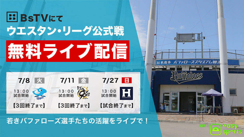 「BsTV」にて7月ファーム公式戦を無料ライブ配信!