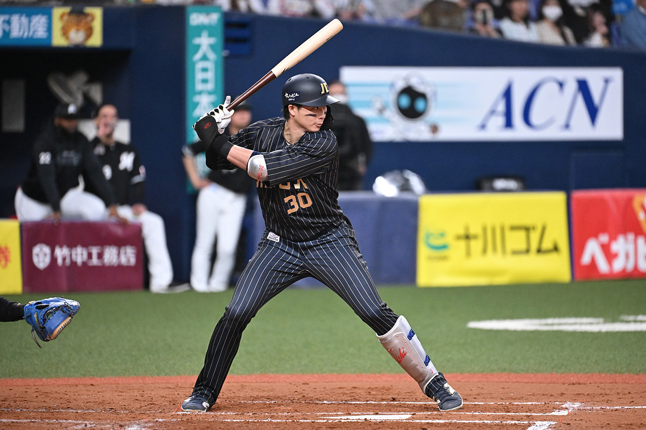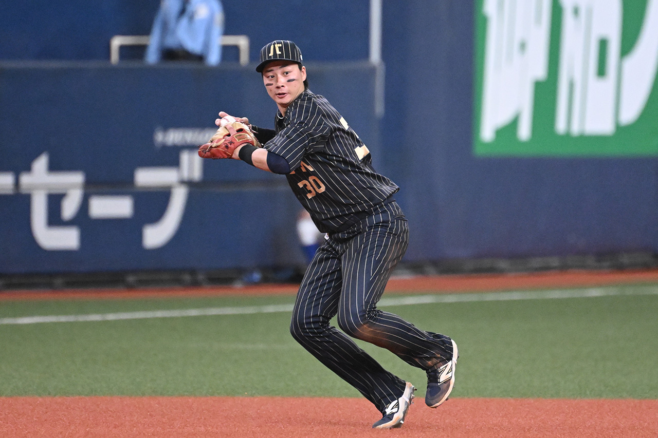廣岡選手がその才能を開花させたのが、バファローズ移籍3年目の2025年。内外野の複数ポジションを守るユーティリティプレーヤーとして存在感を放ちながら118試合に出場。大台100本を超える安打数を記録(102本)し、打率は前年の.194から.254へと大きく進化。初めて規定打席にも到達しました。