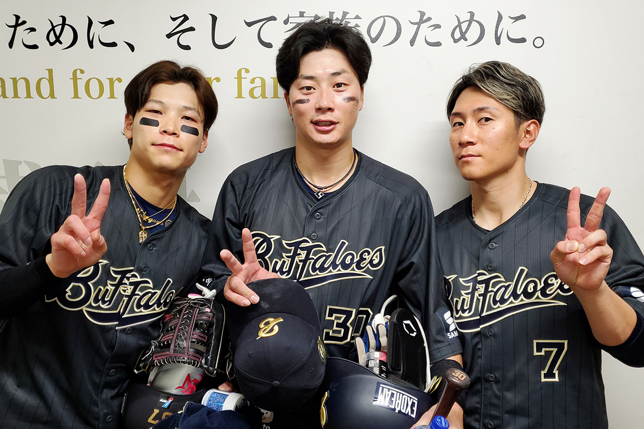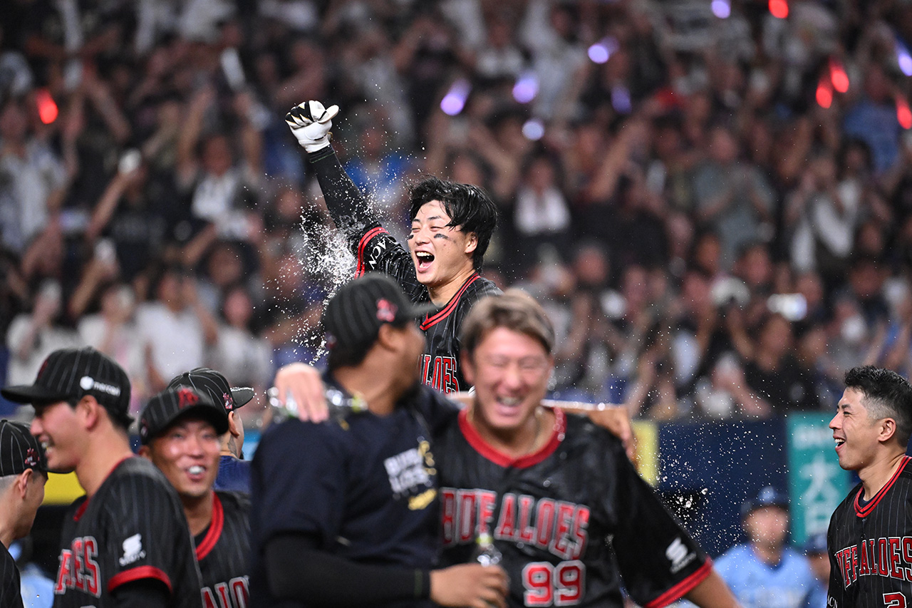 特にファンの心に焼き付いたのは8月17日の対埼玉西武ライオンズ戦(京セラドーム大阪)。序盤6点のリードを許しながら一発攻勢で追いついてみせたバファローズは、引き分け間近の延長12回裏、廣岡選手がレフトスタンドに突き刺したサヨナラホームランで勝負を決めました。お立ち台で大きな拍手を受けた廣岡選手は「最高です!」と頬を緩ませました。