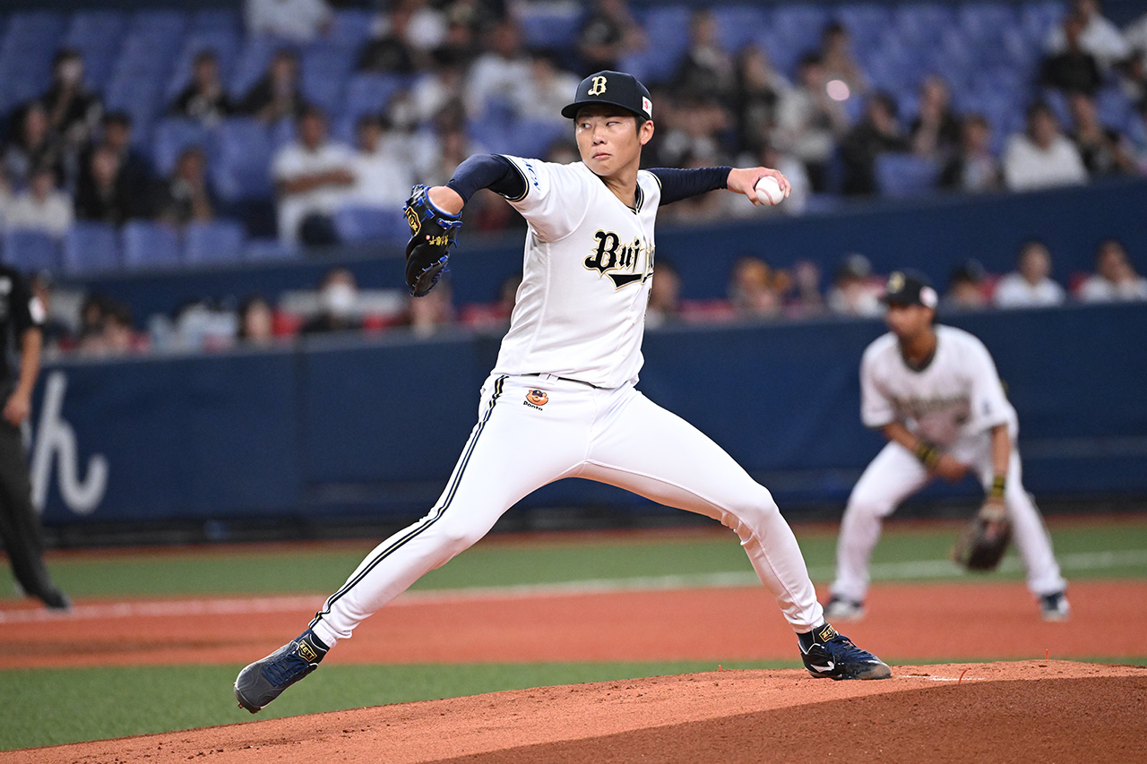 即戦力として期待されたルーキーイヤーの2023年こそ登板10試合で1勝にとどまりましたが、2年目の2024年より先発ローテーションに定着。20試合に登板し、先発投手としては宮城大弥投手に次ぐ防御率2.34を記録しました。翌2025年にはキャリアハイの8勝をマークしています。