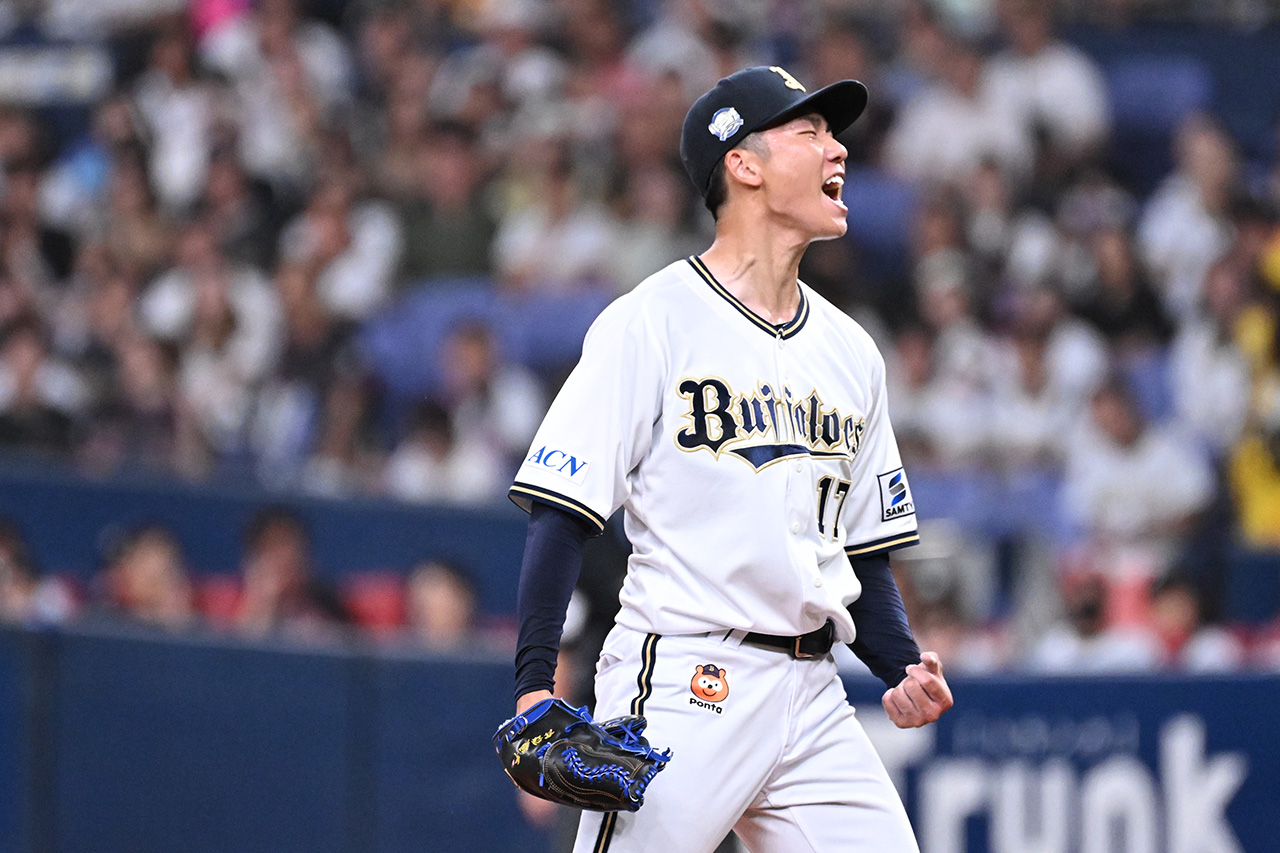 初勝利は2023年シーズン最終戦となった10月9日の対福岡ソフトバンクホークス戦(京セラドーム大阪)。6回1安打無失点の投球でプロ初白星をつかみ、試合後は「最後にこうやって勝てたことが一番良かった」と、プロ10試合目で手にした一勝をかみしめました。