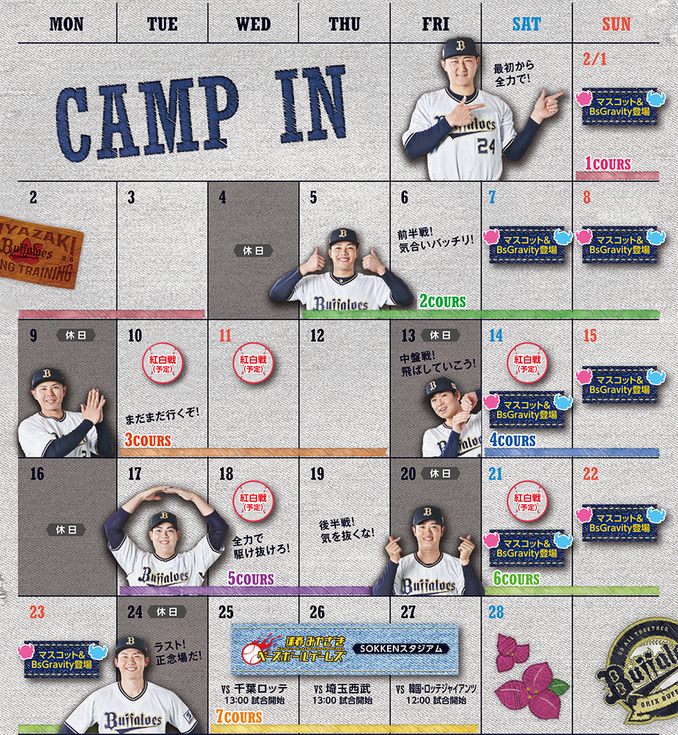 イベント マスコット BsGravity BsGirls BsGuys2026/02/05 (木)宮崎春季キャンプ特設ステージスケジュールのお知らせ(2/7-8) -