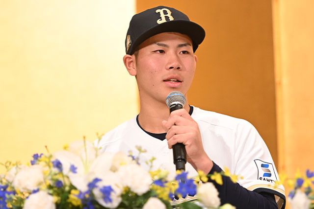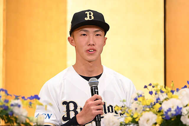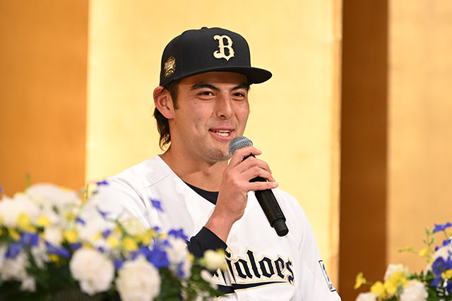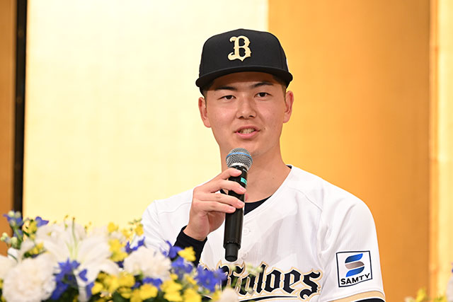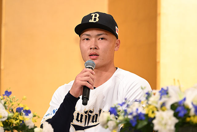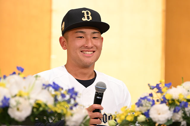 A:身体能力を活かしたプレーが持ち味だと思っています。バファローズの優勝に貢献できる選手を目指していきます。
