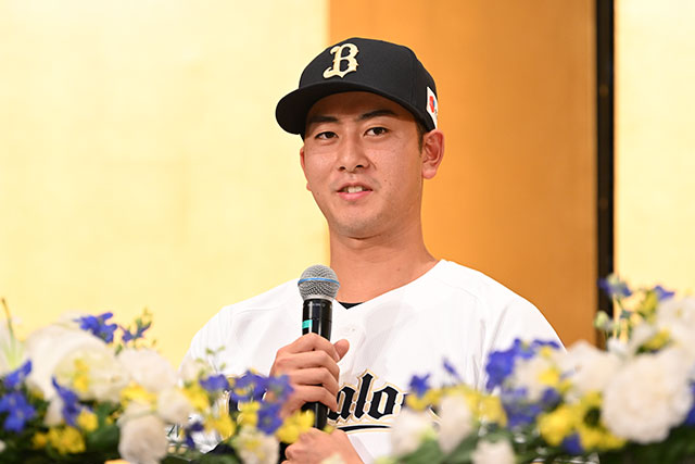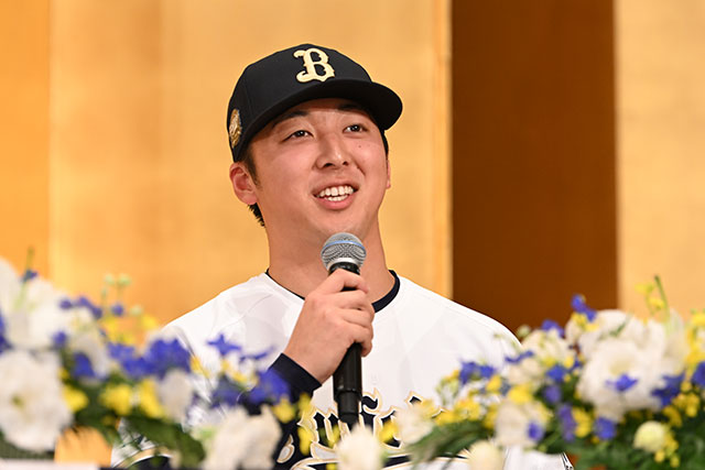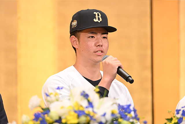 A:即戦力として期待していただいていると思うので、開幕1軍を目指します。バファローズの一員として、リーグ優勝・日本一に貢献できるよう頑張ります!