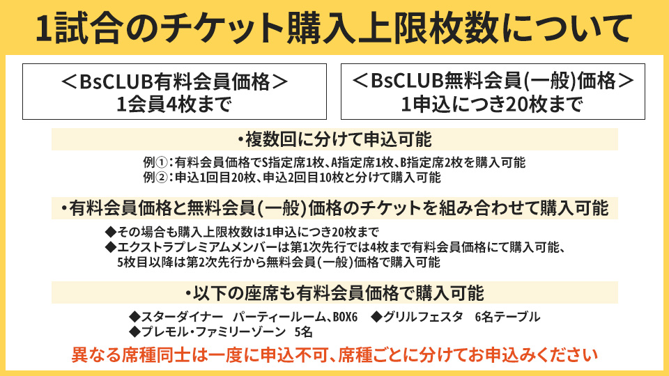 チケット ファンクラブ2026/01/23 (金)【BsCLUB】「4月・5月特定日指定席引換券」について