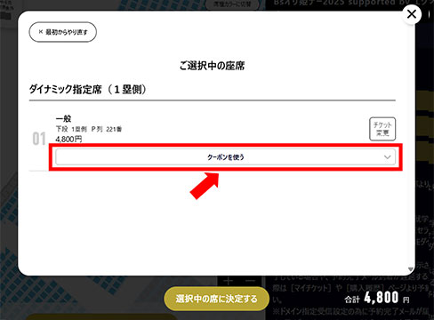 ※チケットクーポンによっては一部試合・一部席種にご利用いただけない場合がございます。