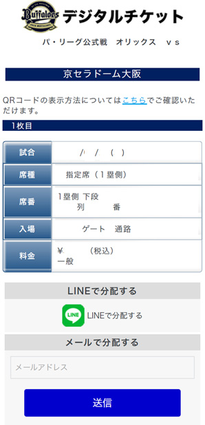 バファローズ公式チケットサイト「オリチケ」でご購入の場合