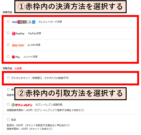 ステップ1:チケット購入時に「デジタルチケット」を選択