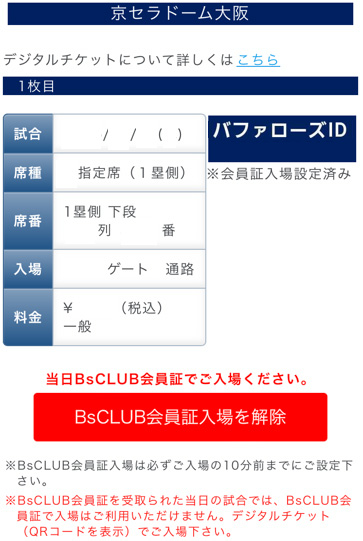 ※「BsCLUB会員証入場」は試合日当日ご入場10分前までにご設定ください。