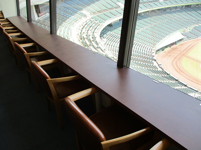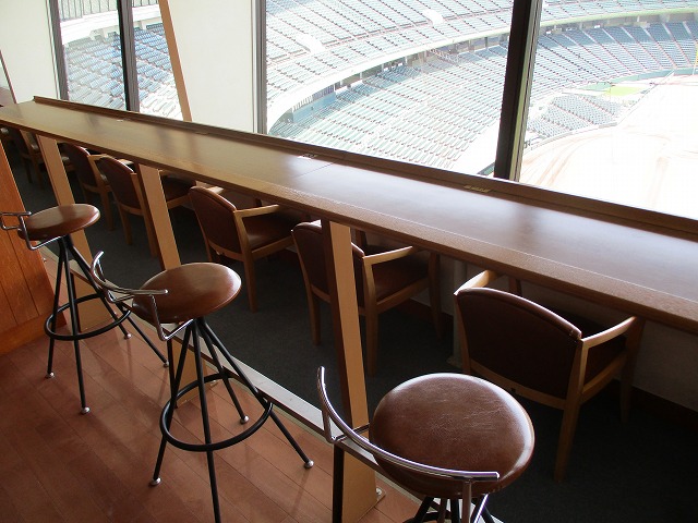 前列よりも一段高いカウンター席。席数は少なくカウンターも狭めですが球場全体を眺める座席は、なかなか観ることのできない高さから試合観戦できる人気席種です。