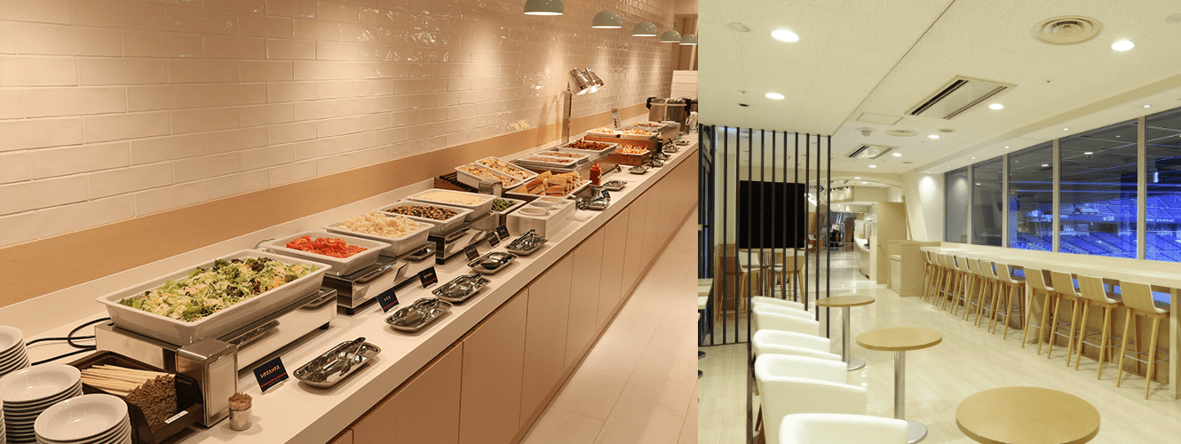 バックネット裏後方に位置する、贅沢な観戦空間である「サッポロスターラウンジ」で飲食サービス(無料)をご提供いたします。