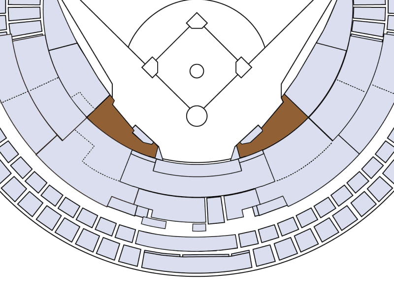 内野前方の指定席。感動と興奮の至近距離観戦。